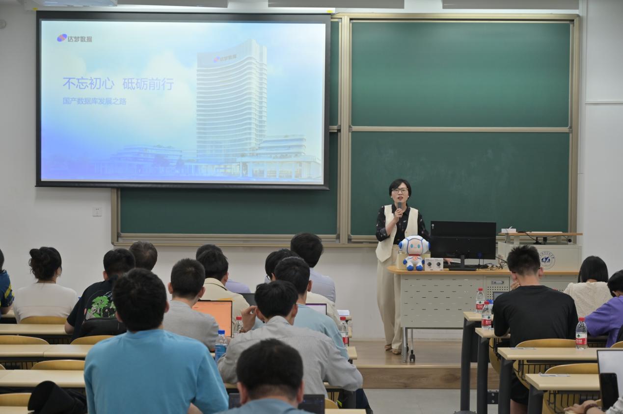 安苾寒老师向与会师生介绍了赛事概况、介绍、亮点和本届竞赛具体安排。往届评审专家邵兵老师对赛题整体内容及特点做解读分析,和同学们详细介绍了备赛各环节工作重点和要求。出题单位之一的领导代表刘志红总经理,从命题思路出发,和同学们详细介绍了国产数据库发展历程和当前研发重点领域,鼓励同学们积极探索、大胆尝试。并且由侯玉峰高级工程师以达梦数据拟定的赛题为例,向同学们详细介绍了“中国软件杯”竞赛的“答题思路”,建议各参赛团队认真解读赛题需求、分析赛题背景、规划研发方案、部署落实开发以及确认最终交付成果等。